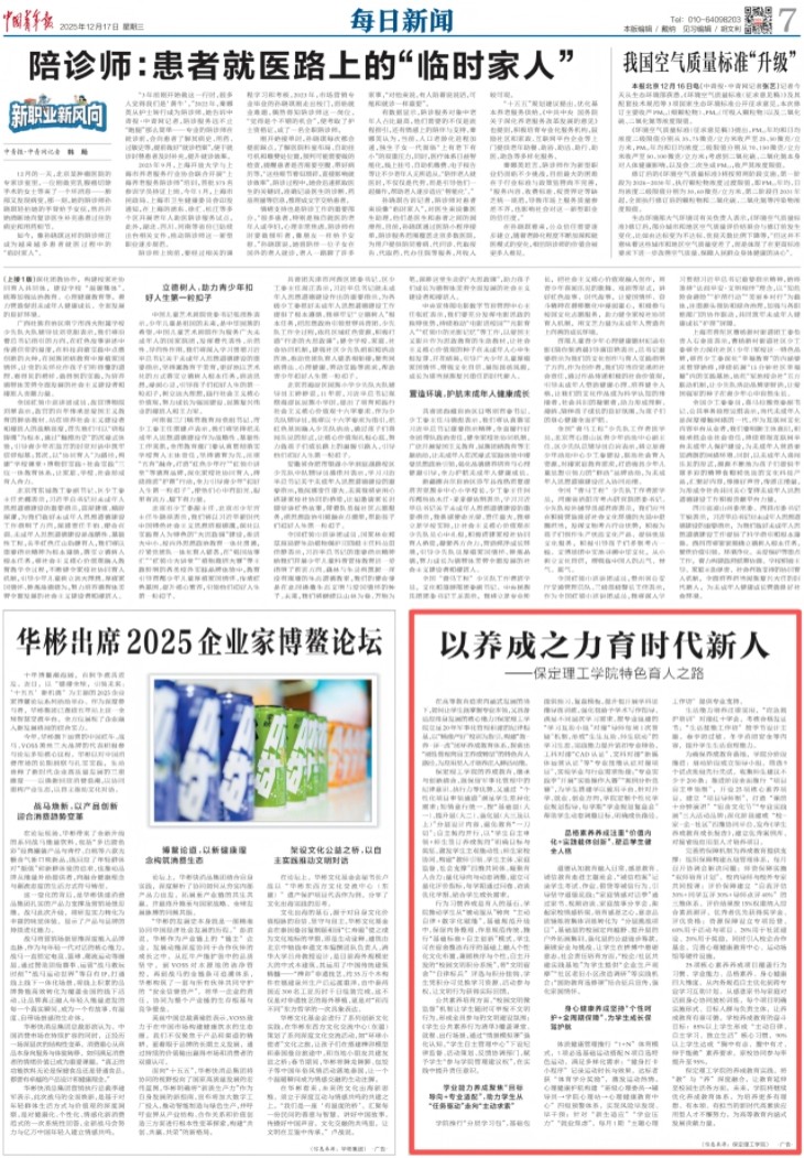 《中国青年报》刊发!以养成之力育时代新人——保定理工学院特色育人之路